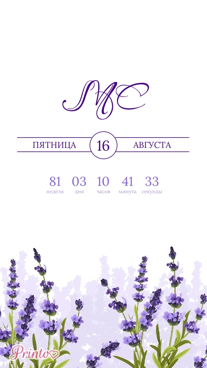 Разместите на нём имена жениха и невесты, дату, а так же обратный отсчёт до свадьбы.