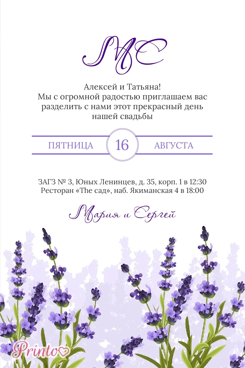 Печатное приглашение на свадьбу