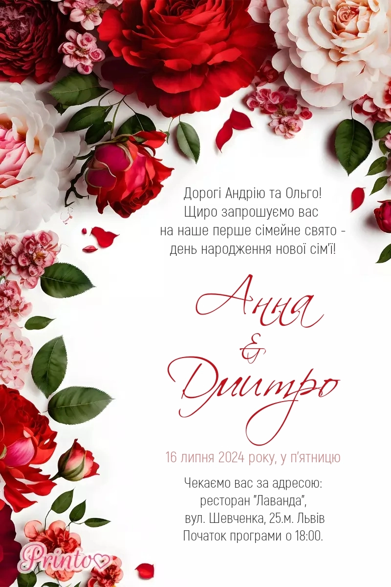 Іменне запрошення для гостей - для кожного запрошення буде автоматично підставлено імена та звернення до гостей.