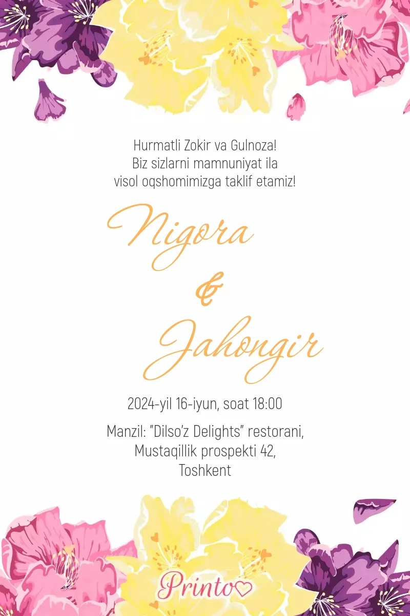 To'ylarga maxsus atmosfera uchun bizning dizaynlarimizdan foydalaning.